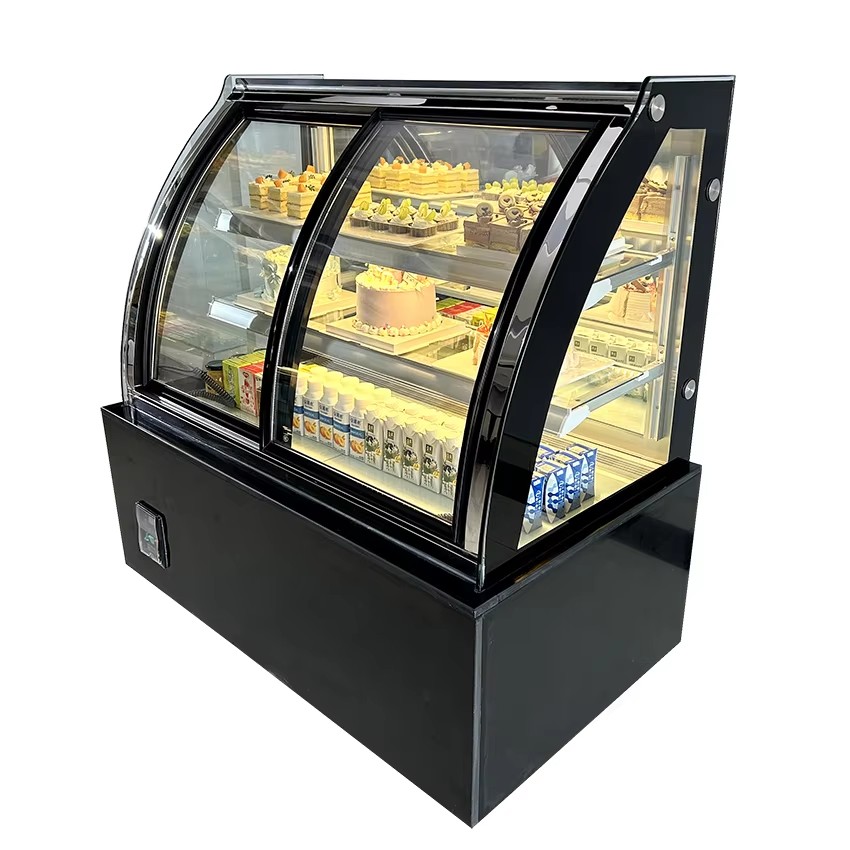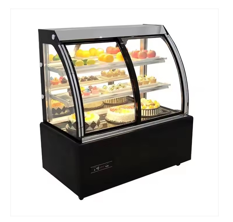 This type of glass cake display fridge is a well-constructed unit for cake and cupcake displaying and fresh keeping, and it’s an ideal refrigeration solution for bakeries, grocery stores, restaurants, and other refrigeration applications. The wall and doors are made of clean and durable tempered glass to ensure food inside display optimally and long service life. The interior LED light can highlight the food and products inside, and the glass shelves have individual lighting fixtures. This cake display fridge has a fan cooling system, it’s controlled by a digital controller, and the temperature level and working status are shown on digital display screen. Different sizes are available for your options.