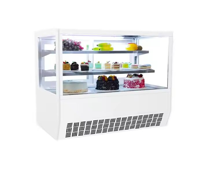 This type of Commercial Bakery Countertop Refrigerated Cake Glass Display Cabinets is a stunning-designed and well-constructed unit for cake displaying and keeping fresh, and it’s an ideal refrigeration solution for bakeries, grocery stores, restaurants, and other refrigeration applications. The wall and doors are made of clean and durable tempered glass to ensure products inside display optimally and long service life, the rear sliding doors are smooth to move and replaceable for easy maintenance. The interior LED light can highlight the food and products inside, and the glass shelves have individual lighting fixtures. This cake display fridge has a fan cooling system, it’s controlled by a digital controller, and the temperature level and working status are shown on digital display screen. Different sizes are available for your options.