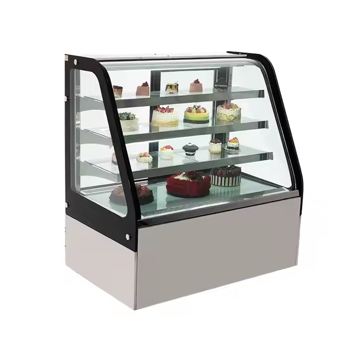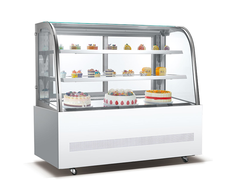 Curve glass cake showcase with front sliding door