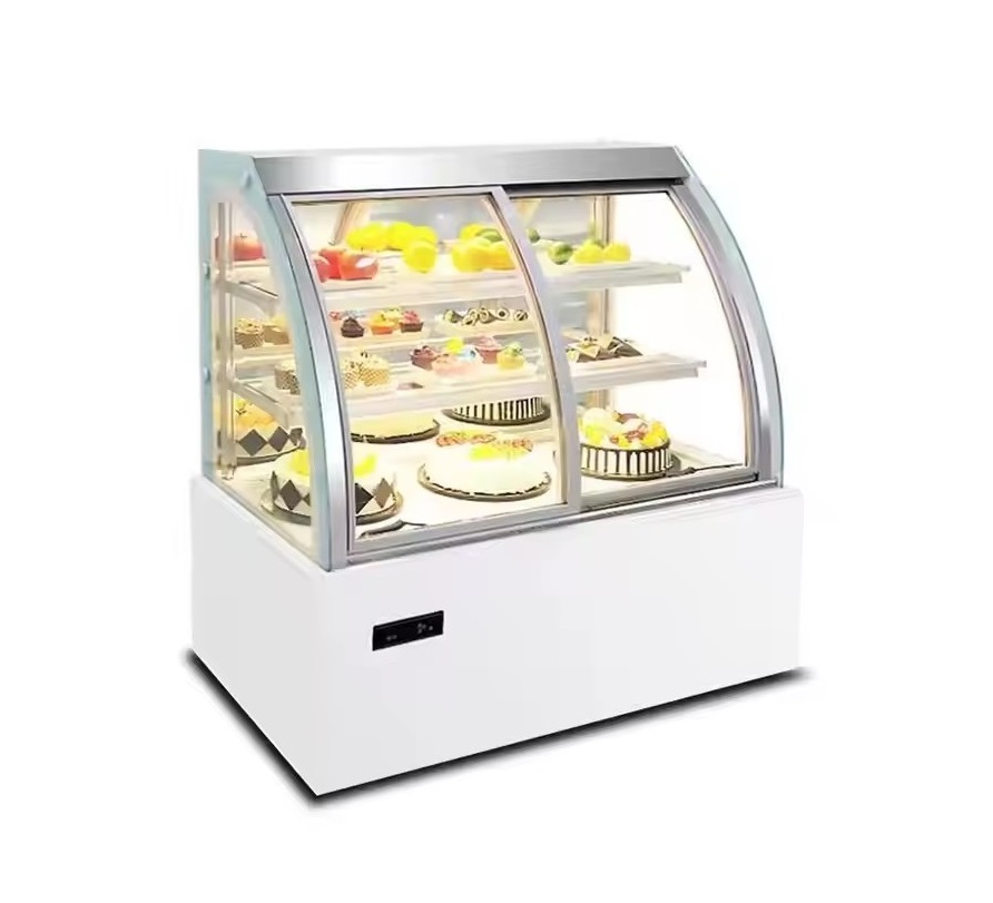 This type of glass cake display fridge is a well-constructed unit for cake and cupcake displaying and fresh keeping, and it’s an ideal refrigeration solution for bakeries, grocery stores, restaurants, and other refrigeration applications. The wall and doors are made of clean and durable tempered glass to ensure food inside display optimally and long service life, the rear sliding doors are smooth to move and replaceable for easy maintenance. The interior LED light can highlight the food and products inside, and the glass shelves have individual lighting fixtures. This cake display fridge has a fan cooling system, it’s controlled by a digital controller, and the temperature level and working status are shown on digital display screen. Different sizes are available for your options.
