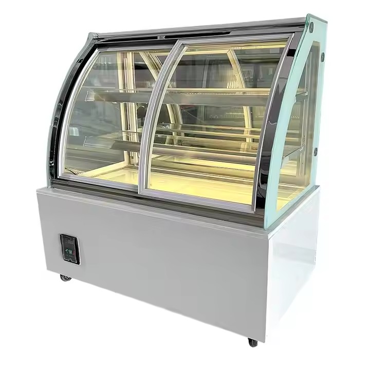 This type of glass cake display fridge is a well-constructed unit for cake and cupcake displaying and fresh keeping, and it’s an ideal refrigeration solution for bakeries, grocery stores, restaurants, and other refrigeration applications. The wall and doors are made of clean and durable tempered glass to ensure food inside display optimally and long service life, the front sliding doors are smooth to move and replaceable for easy maintenance. The interior LED light can highlight the food and products inside, and the glass shelves have individual lighting fixtures. This cake display fridge has a fan cooling system, it’s controlled by a digital controller, and the temperature level and working status are shown on digital display screen. Different sizes are available for your options.