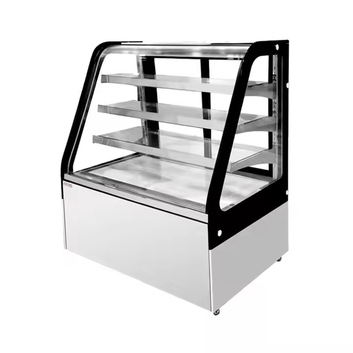 Curve glass cake showcase with 3 shelves