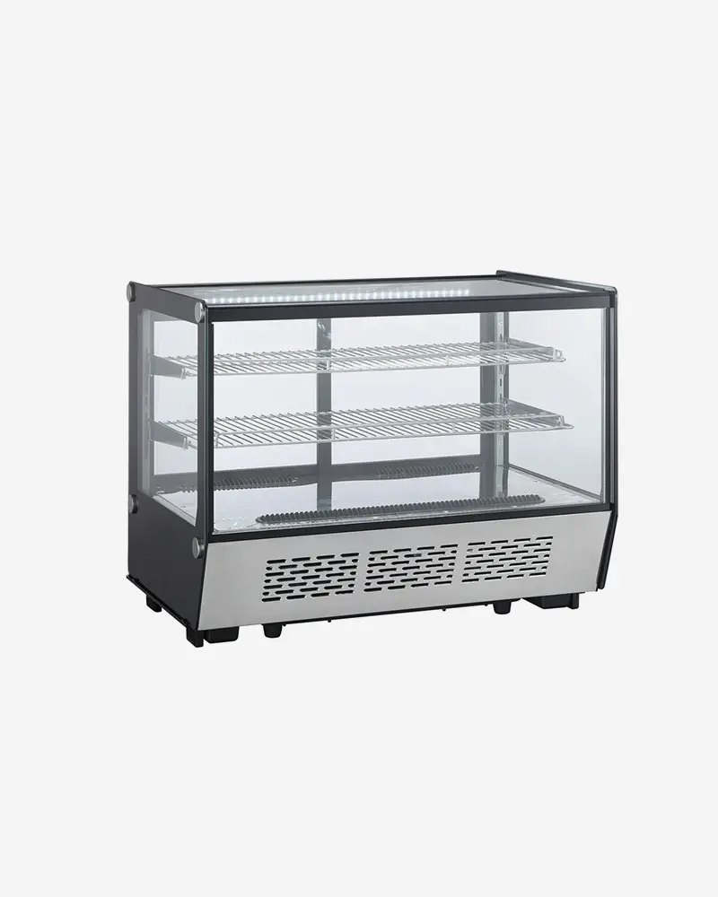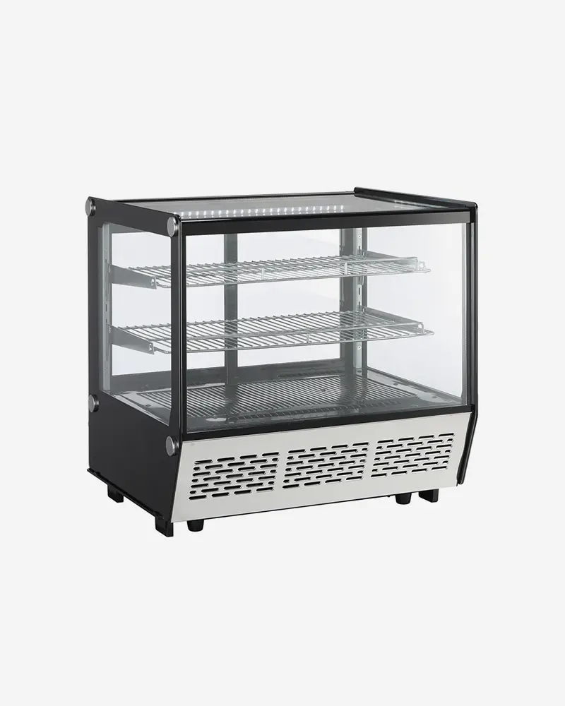This type of Commercial Bakery Countertop Refrigerated Cake Glass Display Cabinets is a stunning-designed and well-constructed unit for cake displaying and keeping fresh, and it’s an ideal refrigeration solution for bakeries, grocery stores, restaurants, and other refrigeration applications. The wall and doors are made of clean and durable tempered glass to ensure products inside display optimally and long service life, the rear sliding doors are smooth to move and replaceable for easy maintenance. The interior LED light can highlight the food and products inside. This cake display fridge has a fan cooling system, it’s controlled by a digital controller, and the temperature level and working status are shown on digital display screen. Different sizes are available for your options.